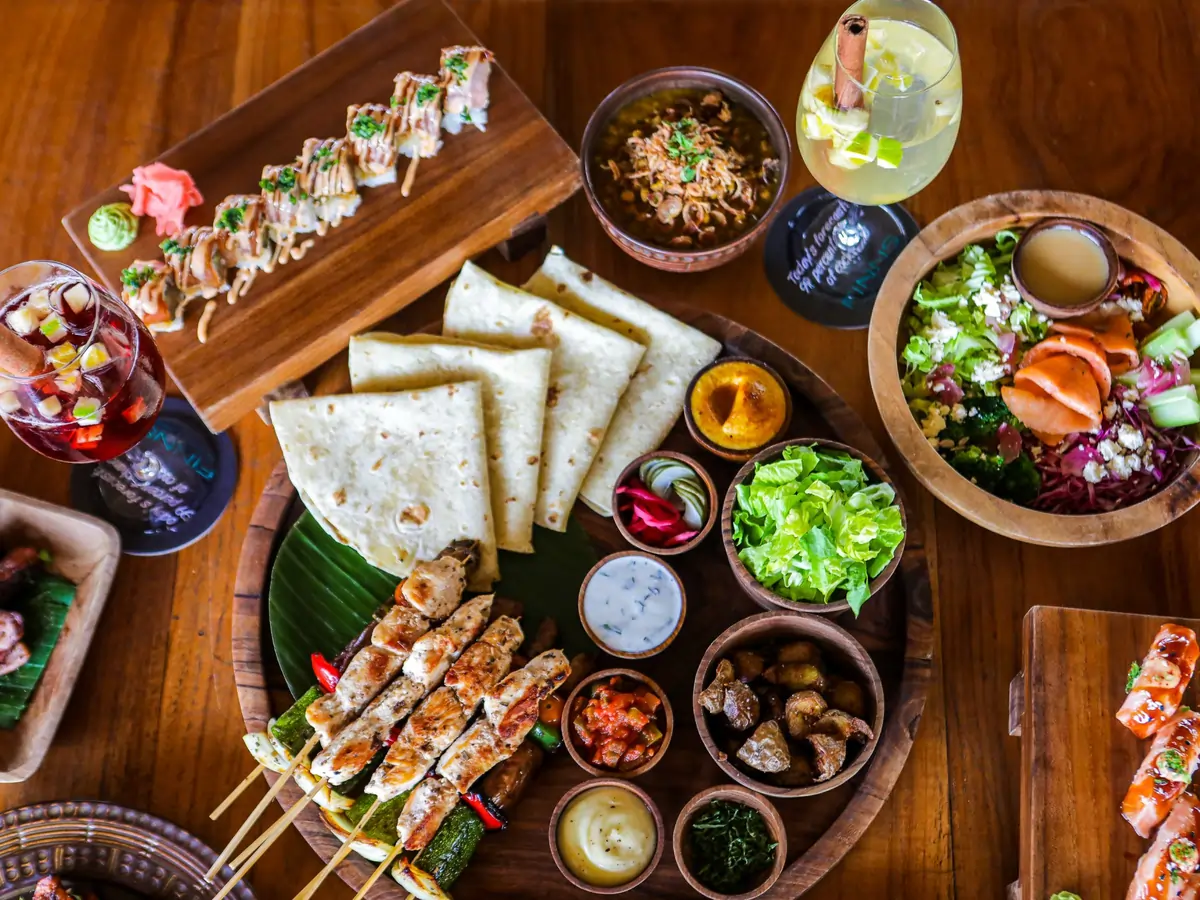 Wisatawan bisa menikmati berbagai jenis makanan mulai dari sushi, pasta, hingga masakan khas Bali seperti sate lilit. Tidak ketinggalan, deretan minuman segar hingga wine premium juga tersedia untuk melengkapi momen santai.